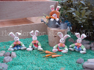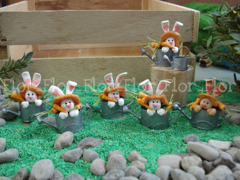 Las vaquitas, conejos,puerquito ,pollo,gallinas, zanahorias estan hechas de polímero.